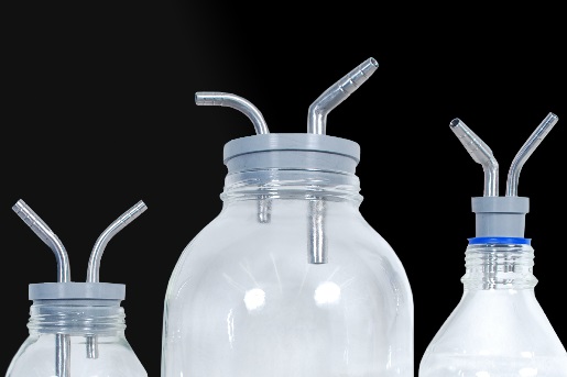 Frascos para succión de 250, 500, 1000, 2000 y 4000,frascos esterilizables para trampas de grasa y tapones siliconados aptos para esterilización con acoples en acero inox.